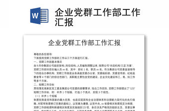 公司黨群工作部20xx年度工作總結(jié)及20xx年度工作計劃20xx年,我部門在上級黨委與公司黨支部的領(lǐng)導(dǎo)下,不折不扣落實兩級黨組織交辦的各項工作任務(wù),全年以“黨建促經(jīng)營、以文化促融合”為主線,重點圍繞公司制度體系建設(shè)、黨風(fēng)廉政建設(shè)、企業(yè)文化建設(shè)三方面開展了工作,為激發(fā)公司黨員活力,促進示范區(qū)各項工作開