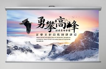 這套實用大氣山岳雪峰勇攀高峰企業文化宣傳PPT模板,為作者風中的機車夢發布,編號:11476809,大小61.71MB,總共38頁,比例為16:9,分為封面、目錄、過渡頁、內容、結尾5個部分。這種敢于想象和打破常規的鬼馬個性PPT非常適合其它PPT模板等多種應用場景。