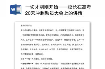 一切才剛剛開始——校長在高考20天沖刺動員大會上的講話-由作者商地互聯上傳,大小14.6 KB,總共5頁,適用于領導講話等多種場景,包含了一切,才,剛剛,開始,校長,在,高考,20,天,沖刺,動員大會上,動員,大會,講話