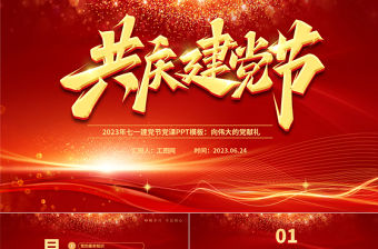 本套實用2023年共慶建黨節PPT紅色光效向偉大的黨獻禮建黨節建黨102周年黨課課件,為作者重生之路lu發布,編號:12258651,大小25.2 MB,總共22頁,比例為16:9,由封面、目錄、轉場頁、內容、結尾5個部分構成。PPT以紅色做為主題色,搭配淺色背景,極為醒目。結構完整;過渡頁設計統一,使得整個PPT富有層次感。動畫設計上也做的非常精細,元素按設定規律展現,演示起來更為流暢。本模板適用于黨課PPT模板等多種場景。