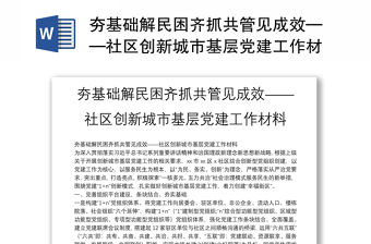 夯基礎解民困齊抓共管見成效——社區創新城市基層黨建工作材料-由作者群徒已死上傳,大小14.1 KB,總共3頁,適用于公文范文等多種場景,包含了夯,基礎,解,解民,民困,困,齊抓共管,見,成效,社區,創新,城市,基層黨建工作,基層,黨建,工作,材料