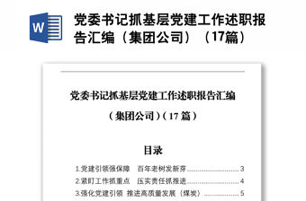 黨委書記抓基層黨建工作述職報(bào)告匯編(集團(tuán)公司)(17篇)-由作者Running遠(yuǎn)方上傳,大小39.1 KB,總共19頁,適用于公文范文等多種場景,包含了黨委書記,黨委,書記,抓,基層黨建工作,基層,黨建,工作,述職報(bào)告,述職,報(bào)告,匯編,集團(tuán)公司,集團(tuán),公司,17,篇