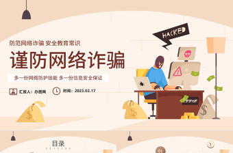 此套實用預(yù)防詐騙你我同行PPT安全教育課件下載,為作者oluckystar發(fā)布,編號:12267745,大小9.2 MB,總共21頁,比例為16:9,分為封面、目錄、過渡頁、內(nèi)容、結(jié)尾5個部分。這種敢于想象和打破常規(guī)的鬼馬個性PPT非常適合等多種應(yīng)用場景。