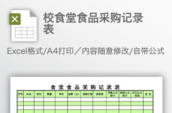 校食堂食品采購記錄表excel表格-由作者儒雅的越良材上傳,大小1 MB,總共1頁,適用于記錄表等多種場景,包含了食堂食品安全ppt,食堂食品安全培訓,食堂食品安全,會議記錄表,學校食堂衛生安全培訓,采購